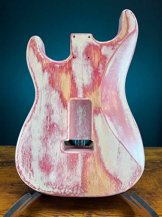 Warmtone Custom Guitars Strat Style Guitar Body “Red White & Wood” Lightweight Relic