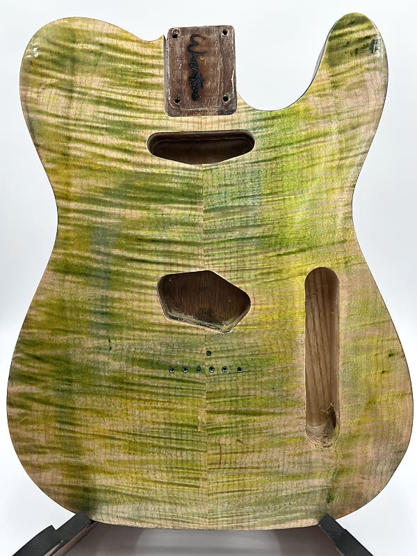 Hi this is a distinct looking Tele with a gloss front and matte back, this guitars finish has its flaws and is not perfect, will be sold at a discount. Please review the accompanying photos closely, There may be imperfections in the finish that i try to capture in the photos. Please note that color representation may vary across different images due to variations in display settings and lighting conditions. The images at the end of this listing provide more details about the guitar like weight and neck pocket fit.