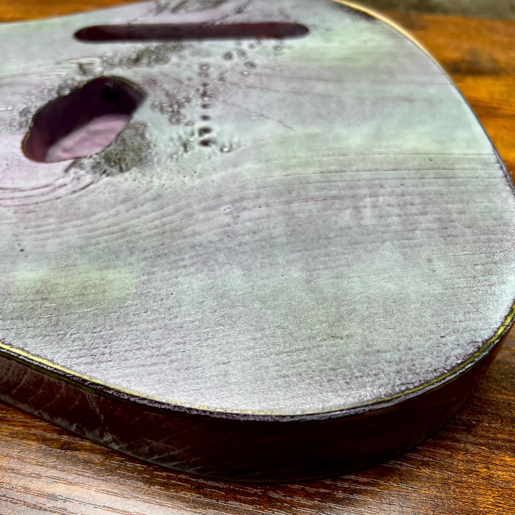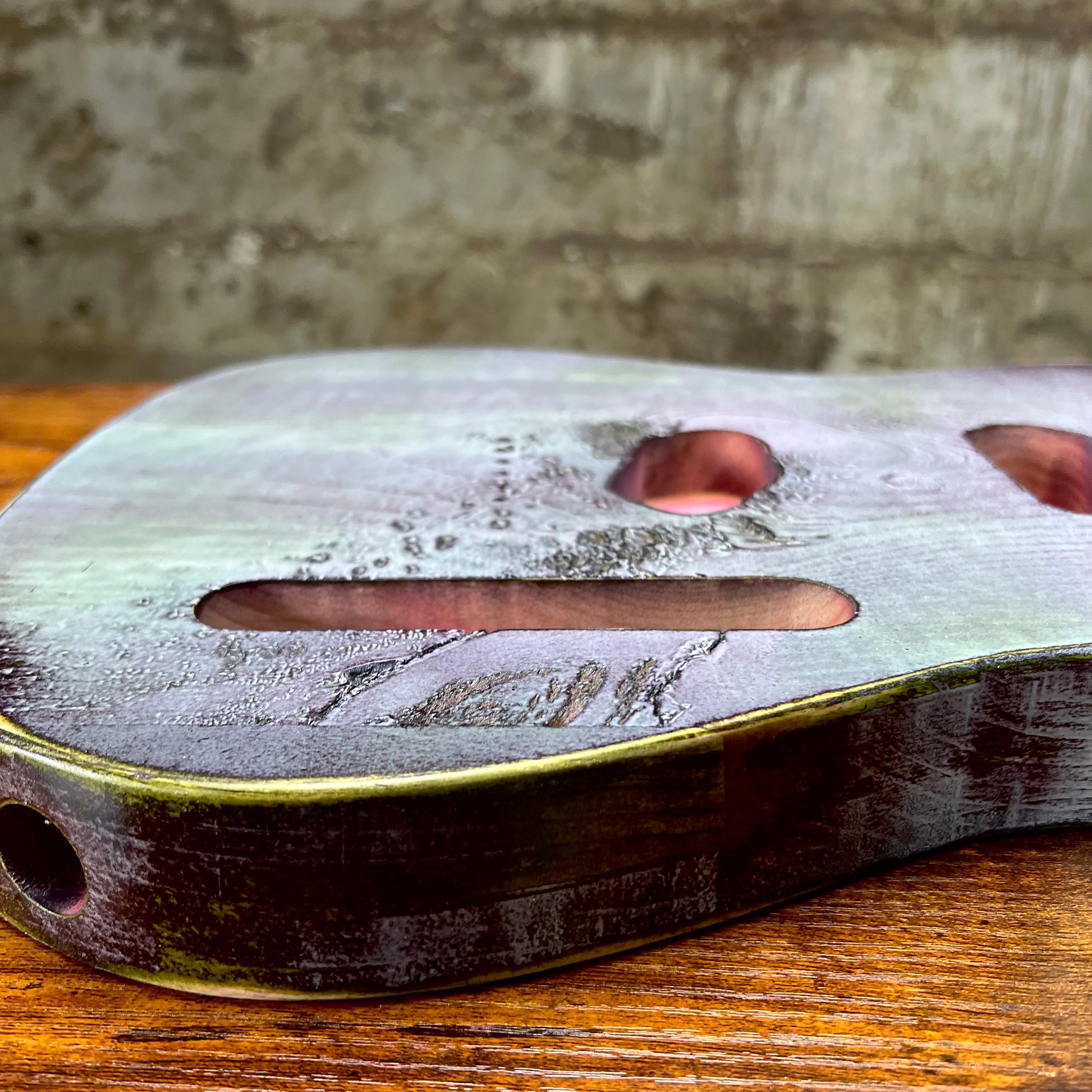 This Tele body is made from a few pieces of pine and is as wild as it gets, featuring a distressed paint job that adds to its unique aesthetic. Over time more colors will reveal themselves.