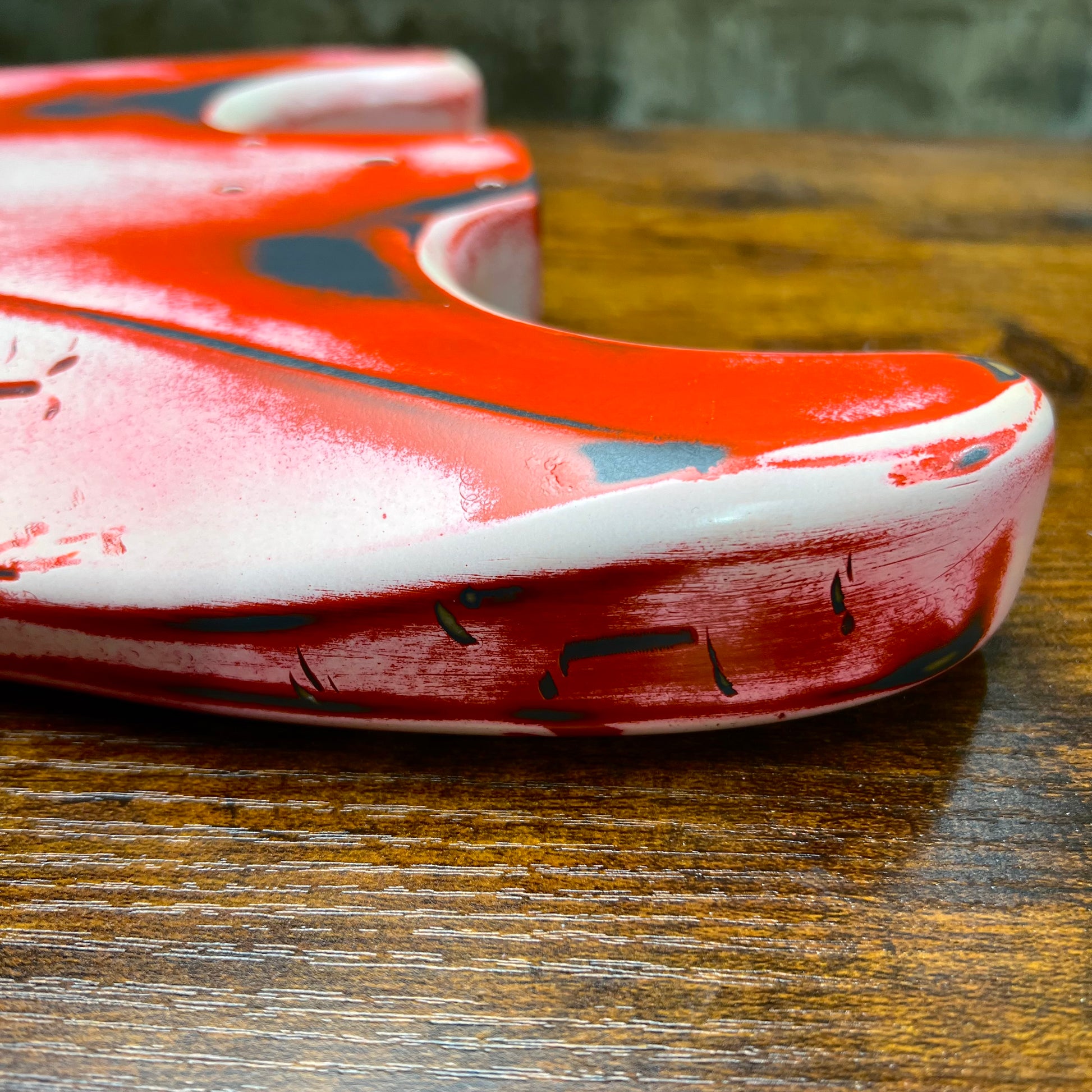 Absolutely crazy guitar, reliced the colors were inspired by Van Halen’s franky guitar, finished in satin nitro