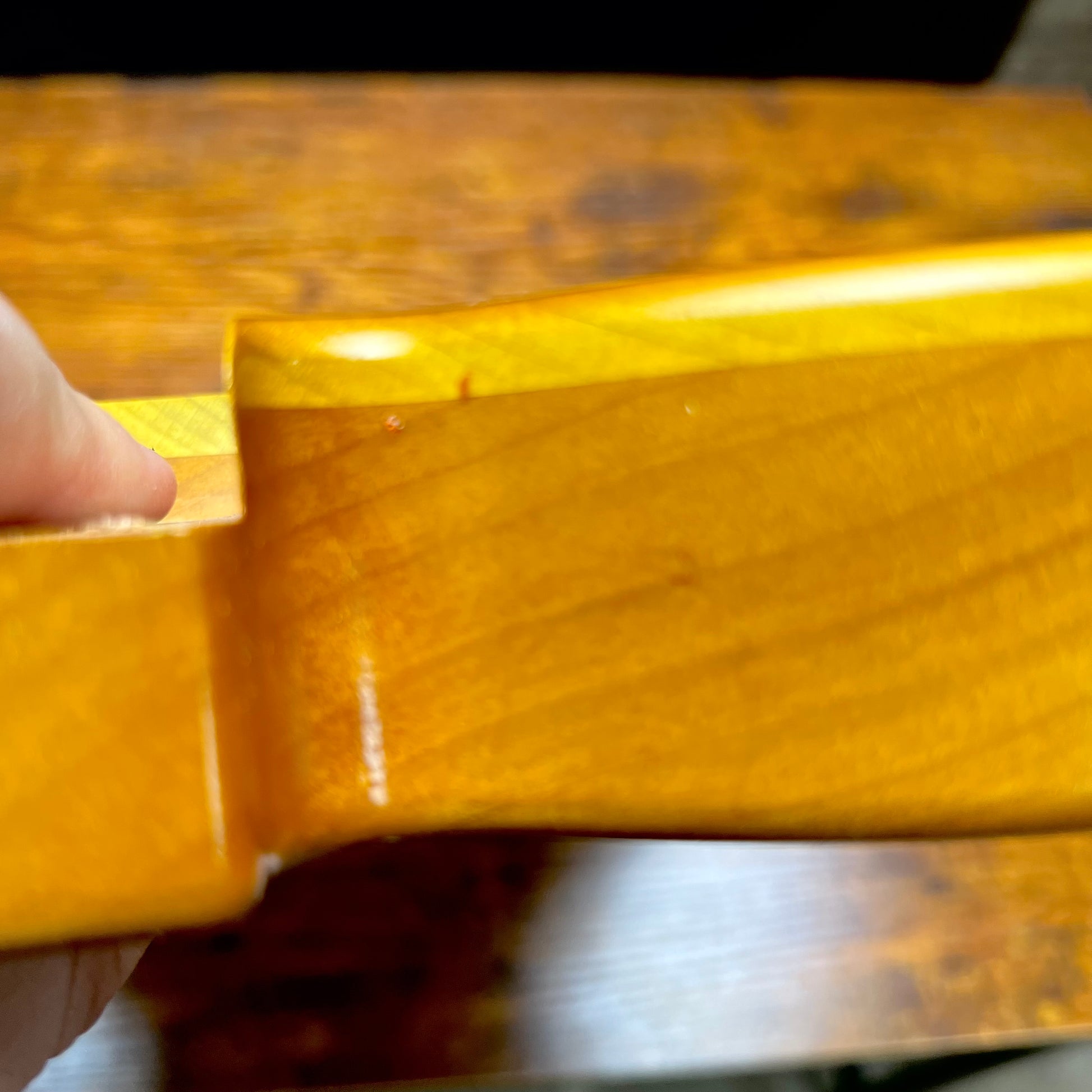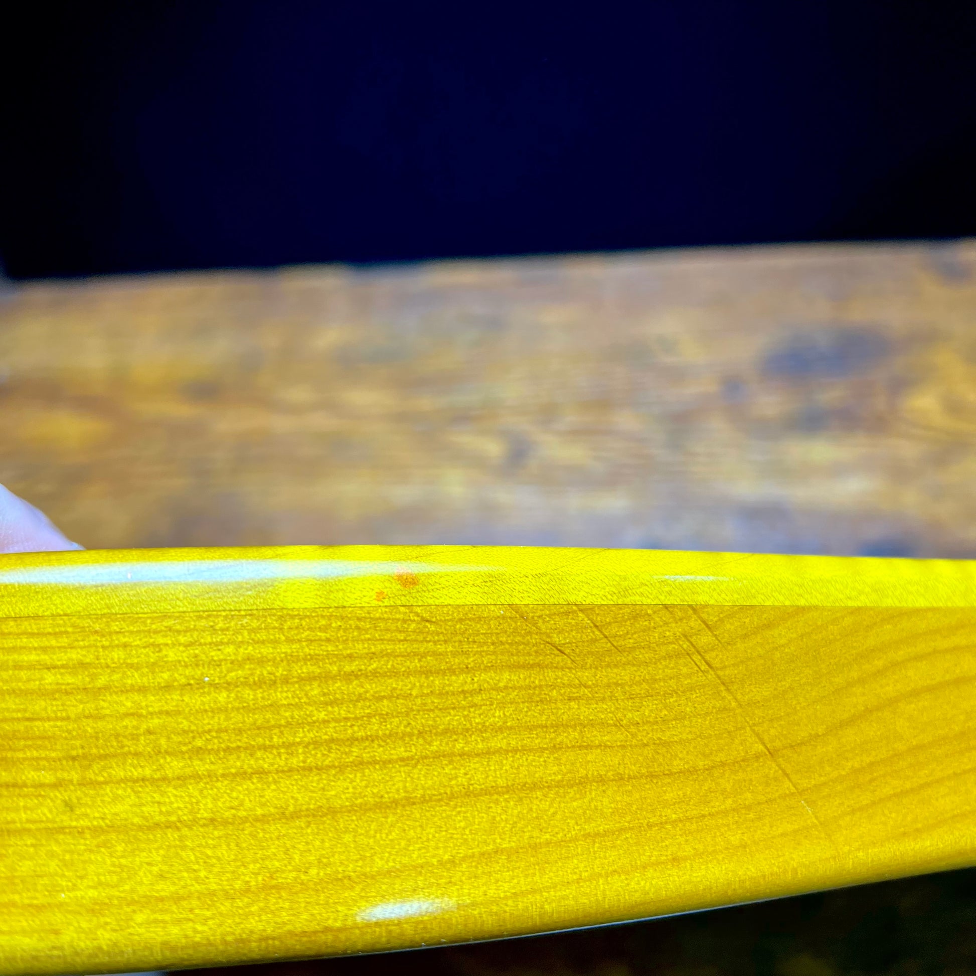 Discover the stunning "Dirty Lemon" Tele guitar, coated in a satin nitro finish that adds a unique, vintage flair. Keep in mind that while the finish may crack and age, it only adds to the character and charm of the instrument. Don't miss out on this incredible opportunity!